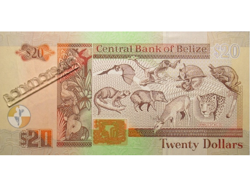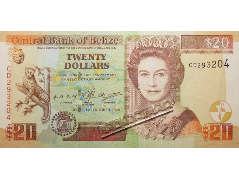 Банкнота Белиз 20 (двадцать) долларов 2000 год. Pick 63b. UNC