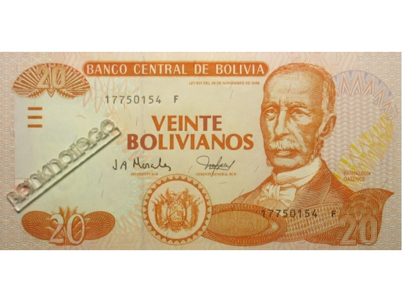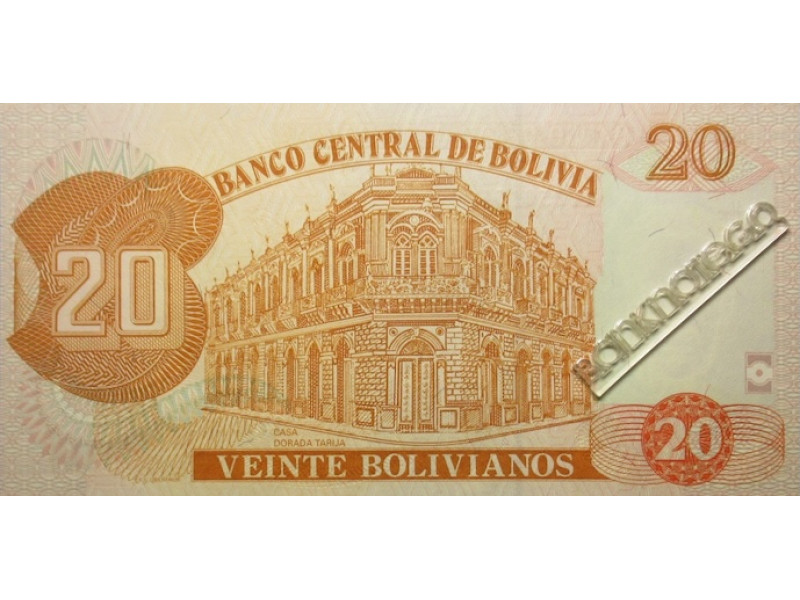Банкнота Боливия 20 (двадцать) боливано 2001 год. Pick 224. UNC